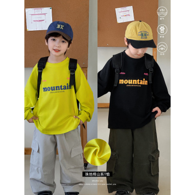 童酷男童秋季新款时尚字母印花宝宝打底衫山系珠地儿童T恤潮