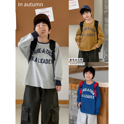 童酷男童秋季新款山系字母刺绣宝宝上衣复古纯色圆领儿童卫衣