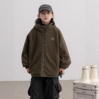 男童摇粒绒外套秋冬款新款大男孩冬装工装儿童冬季双面穿上衣