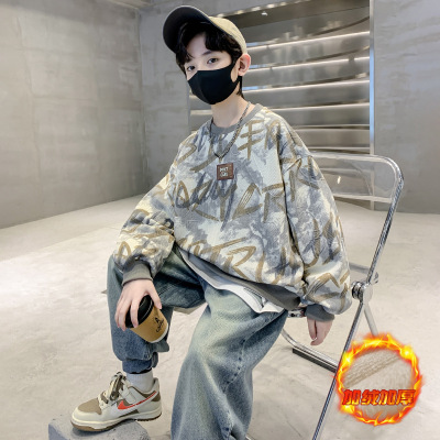 儿童装男童冬装加绒卫衣新款秋冬中大童男孩洋气上衣