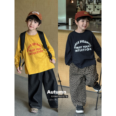 童酷男童秋款湖州织里童装竹节棉字母印花打底衫百搭儿童T恤