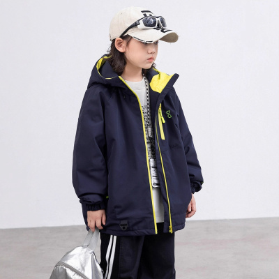 男童夹棉外套新款中大童二棉棉服秋冬儿童户外三防冲锋衣加厚
