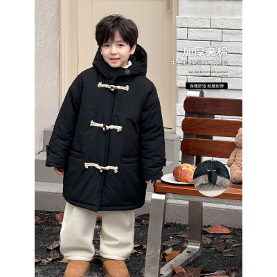 童酷儿童冬款湖州织里童装加厚夹棉牛角扣连帽男童棉衣外套潮