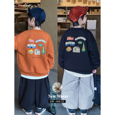 儿童装男童冬季一体加绒卫衣新款秋冬款中大童男孩加厚上衣潮