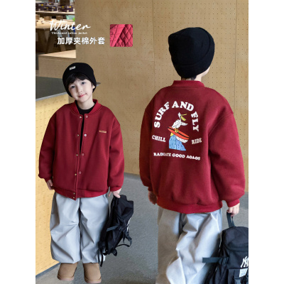 童酷男童冬款新年红卡通印花棒球服外套加厚贴标夹棉儿童棉服