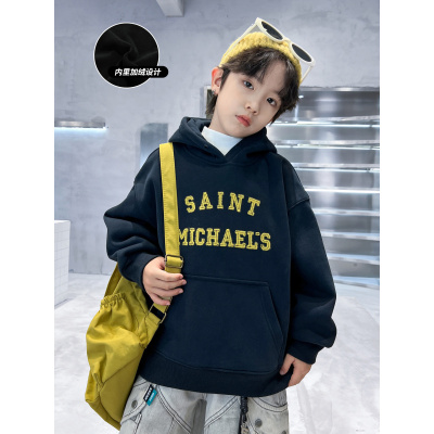 男童连帽加绒卫衣秋冬款新款冬装打底衫加厚中大童上衣秋冬潮