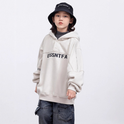 童酷男童冬季新款百搭字母印花宝宝上衣贴标连帽加绒儿童卫衣