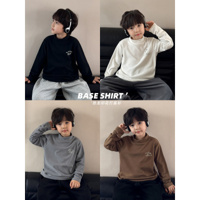 童酷儿童冬款湖州织里童装百搭纯色条纹T恤半高领男童打底衫