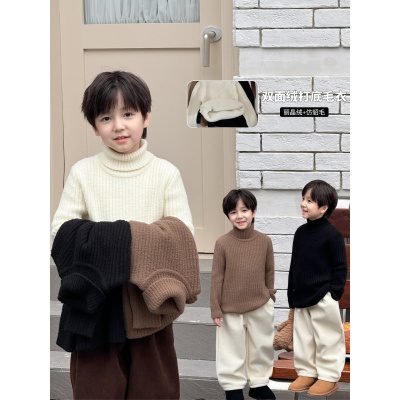 童酷儿童冬款湖州织里童装纯色双面绒针织衫高领打底男童毛衣