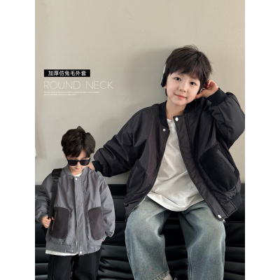 童酷儿童冬款湖州织里童装韩版宝宝棉服仿兔毛加厚男童外套潮