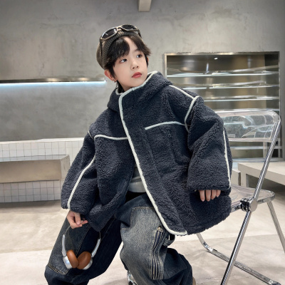 男童加厚羊羔绒外套秋冬季新款潮酷冬装儿童夹棉中大童毛毛衣