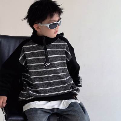 男童冬装加绒卫衣扎染新款加厚保暖一体绒痞帅儿童半高领上衣