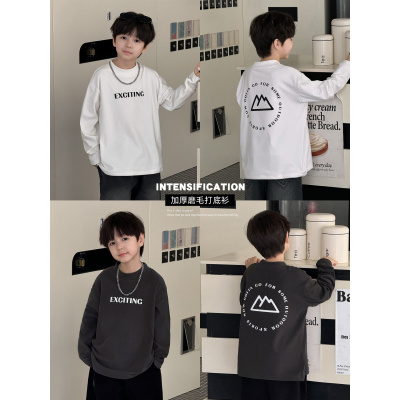 童酷儿童冬款湖州织里童装百搭小山印花T恤加厚男童打底衫潮