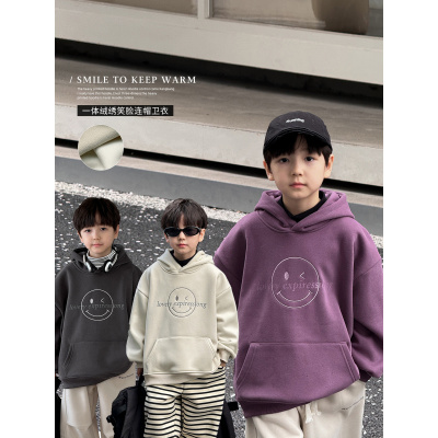 童酷儿童冬款湖州织里童装韩版宝宝上衣笑脸刺绣连帽男童卫衣