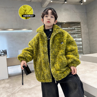 男童夹棉外套新款痞帅毛毛衣儿童羊羔毛加厚中大童秋冬装上衣