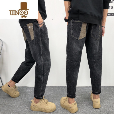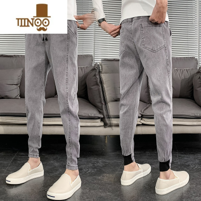 YANXU网红痞帅束脚牛仔裤男潮流百搭九分休闲裤修身小脚长裤子男