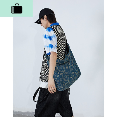 DBSC潮牌经典腰果花单肩斜挎包休闲潮流大容量书包工装机能男包包NEW LAKE 蓝色男士斜挎包