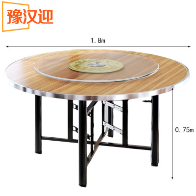 豫汉迎 食堂木质圆餐桌 1.8米含转盘 套
