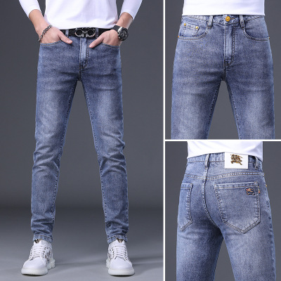 欧货牛仔裤男夏季薄款新款高端刺绣潮流弹力修身小脚长裤子男