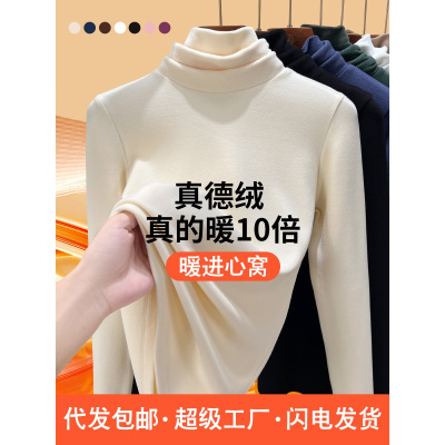 双面德绒高领打底衫女秋冬2023新款洋气内搭长袖T恤发热保暖上衣