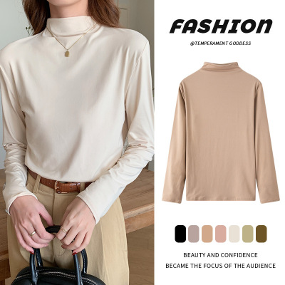 半高领打底衫女秋新款修身高弹长袖秋衣百搭T恤春秋内搭