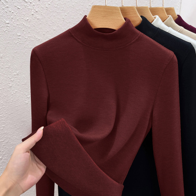 半高领羊毛蚕丝保暖内衣女加厚加绒打底衫暖绒发热内搭上衣冬