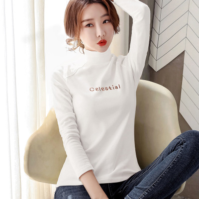 秋冬双面绒发热德绒打底衫女半高领加绒加厚保暖长袖T恤上衣服女