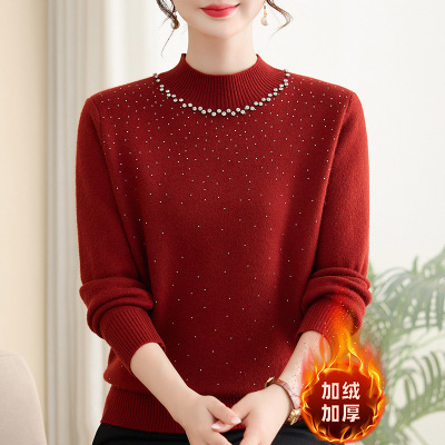 新款女装加绒保暖针织妈妈装上衣女洋气中老年人衣服大码40-60岁