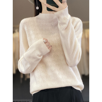 一线成衣半高领镂空半身花女装秋冬新款针织衫宽松毛衣打底衫