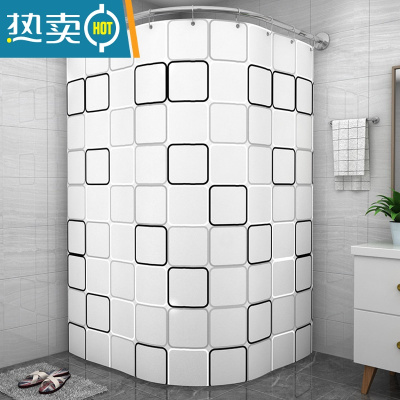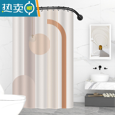 敬平浴室浴帘防水布套装洗澡卫生间窗帘免打孔弧形杆挂帘子门帘隔断帘