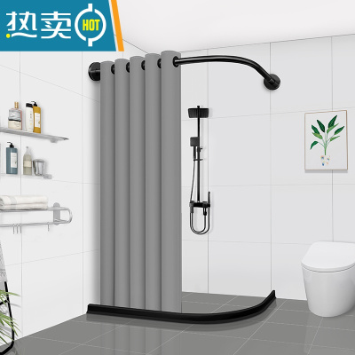 敬平浴帘套装免打孔弧形洗澡浴帘杆卫生间挂帘布浴室隔断帘子加厚防水