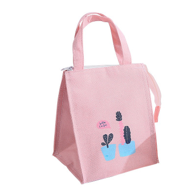 清科蓝 学生饭盒保温包帆布收纳包仙人掌手提包铝箔加厚大号保温袋带饭包便当袋上班族装饭盒袋子保鲜防油铝膜隔热珍珠棉