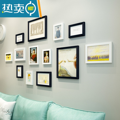 敬平现代简约照片墙相框挂墙免打孔创意装饰卧室客厅组合框加洗照片框 13框 白色+黑色 洗照片+(安装图纸+无痕钉等配件)