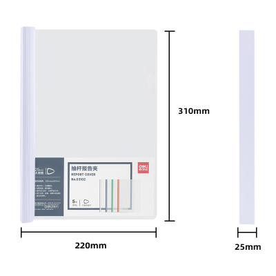 得力(deli)5只A4透明拉杆夹/抽杆夹/报告夹/文件夹 25mm大背宽简历报告夹 63102 白色 单位:包
