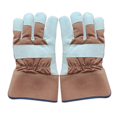 铂识 半皮帆布工作手套(加绒款) 均码 双