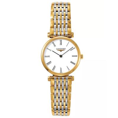 LONGINES浪琴女士石英腕表两-tone不锈钢表带白色罗马时标防水瑞士制造