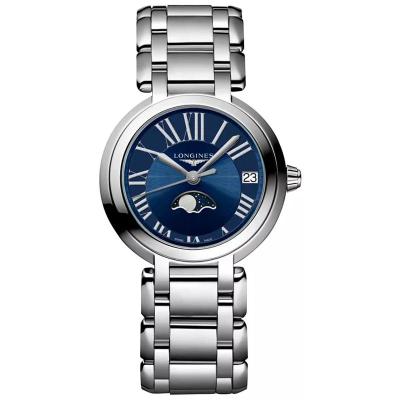 浪琴(LONGINES)女士石英月相腕表31mm瑞士原装自动机械表蓝色表盘防水经典款