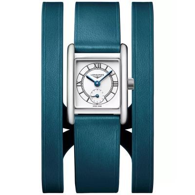 Longines/浪琴女士石英防水瑞士皮质三排扣矩形石银表盘腕表