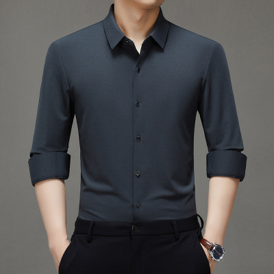 纯色无痕含绵羊毛长袖男士衬衫秋季新款翻领商务休闲衬衣男