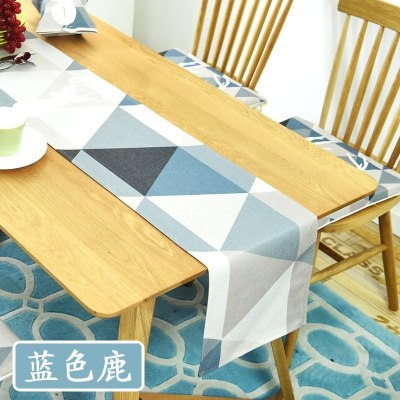 家柏饰(CORATED)现代简约风桌旗北欧棉麻小清新床尾巾电视柜鞋柜布茶几布艺 蓝色鹿 30*180cm
