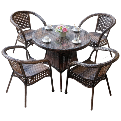 戴劲藤椅阳台桌椅室外庭院藤编椅子花园茶几藤椅组合 4椅+90全藤圆桌