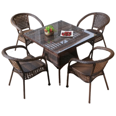 戴劲 藤椅阳台桌椅庭院藤编椅子花园茶几藤椅组合 4椅+150全藤直角桌