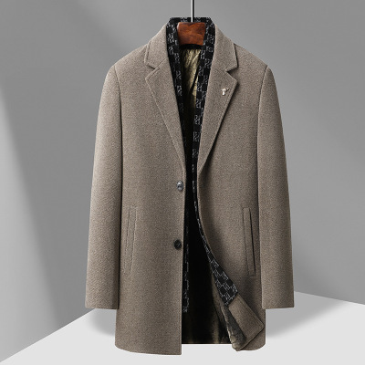 秋冬新款羽绒内胆双面呢大衣男士加厚中老年翻领羊毛大衣