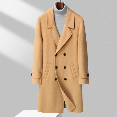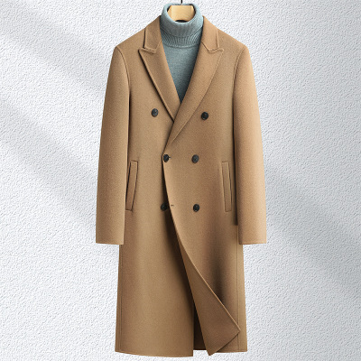 男式大衣秋冬新款100%羊毛男士双排扣双面呢大衣过膝长款羊毛大衣