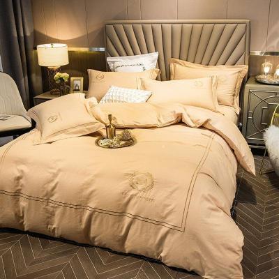 美帮汇款刺绣色长绒棉四件套全棉全棉简约床单被套床上用品套件