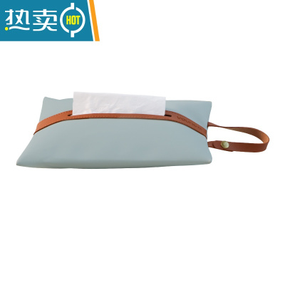 敬平皮革车载纸巾套悬挂式 简约家用纸巾袋 客厅厕所抽纸袋纸巾盒ins 挂绳款[初夏蓝]