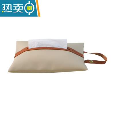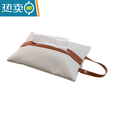 敬平皮革车载纸巾套悬挂式 简约家用纸巾袋 客厅厕所抽纸袋纸巾盒ins 挂绳款[貂白色]