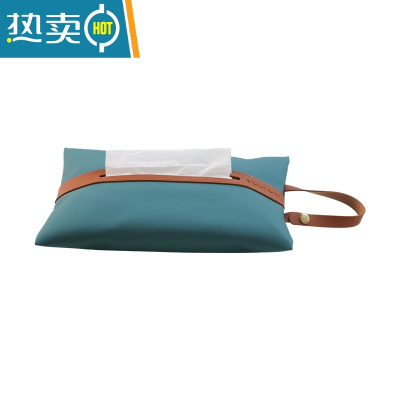 敬平皮革车载纸巾套悬挂式 简约家用纸巾袋 客厅厕所抽纸袋纸巾盒ins 挂绳款[甘蓝色]
