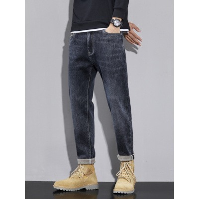 肥佬牛仔裤男新款抓绒休闲哈伦直筒裤男士春秋舒适百搭长裤子
