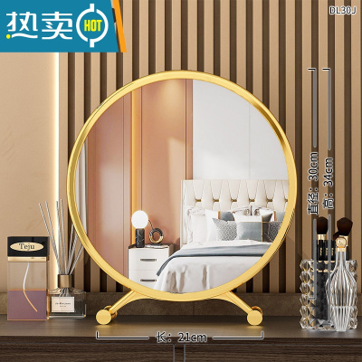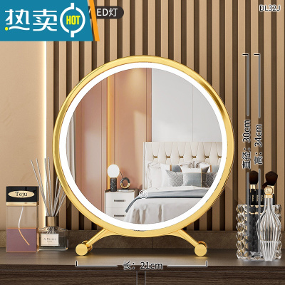 敬平大号台式桌面led带灯补光梳妆圆镜子宿舍网红少女心ins风便携式用镜 日落金[高清镜面]30cm-小仙女 款❤️